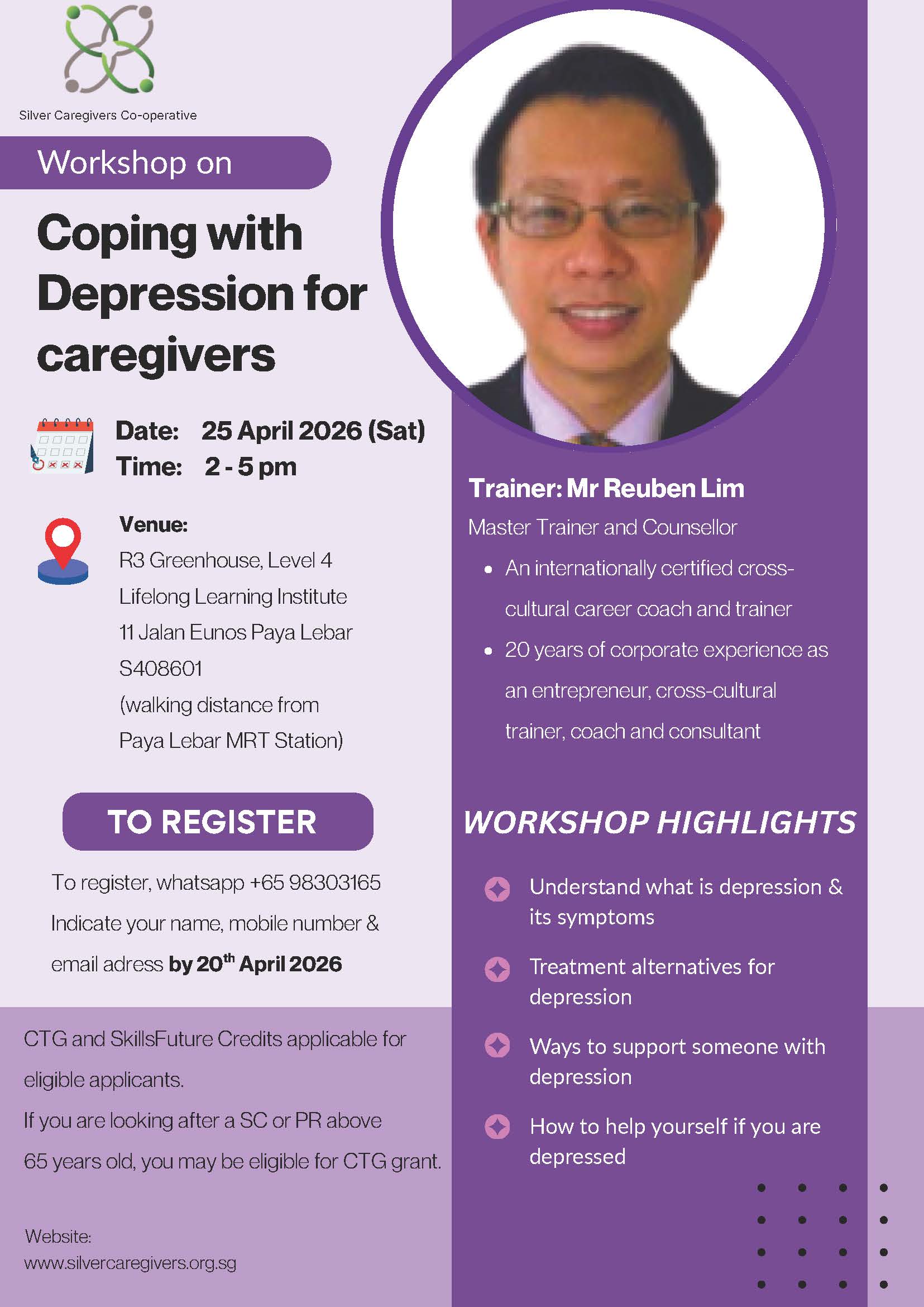 We champion the cause of caregivers by empowering them with relevant holistic skill sets. Silver Caregivers Cooperative Limited envisions a caring society served by well-informed and well-prepared caregivers.